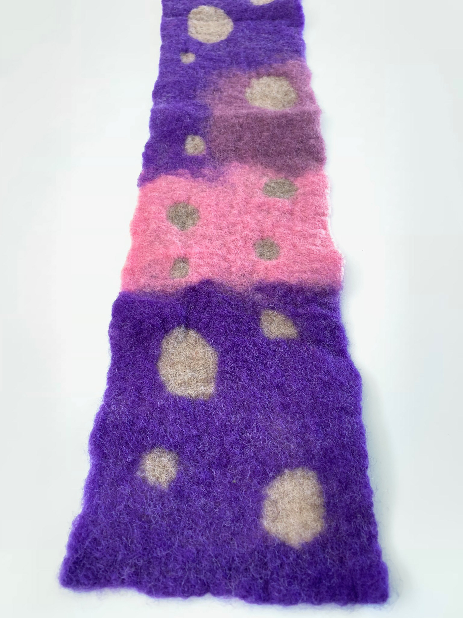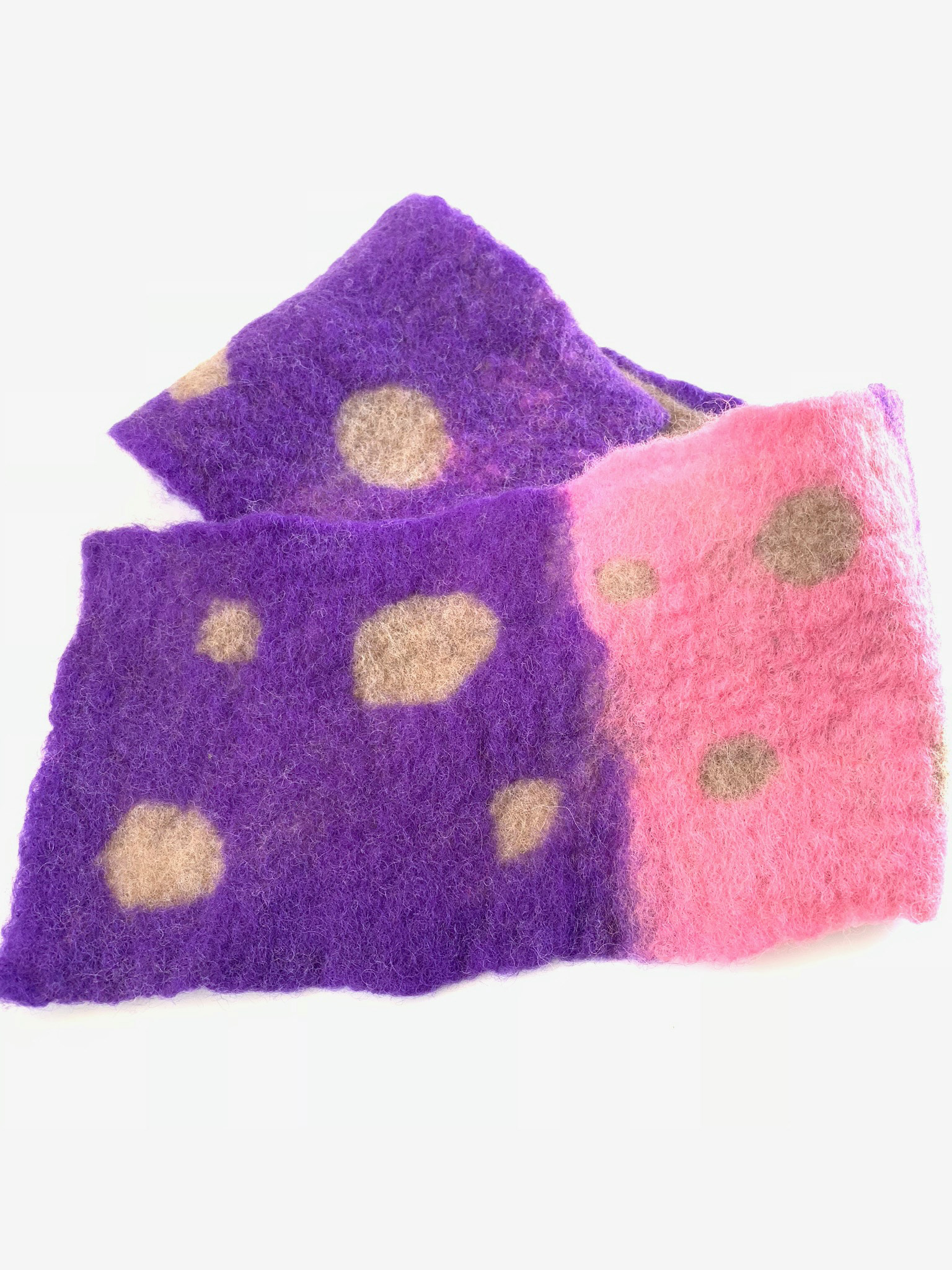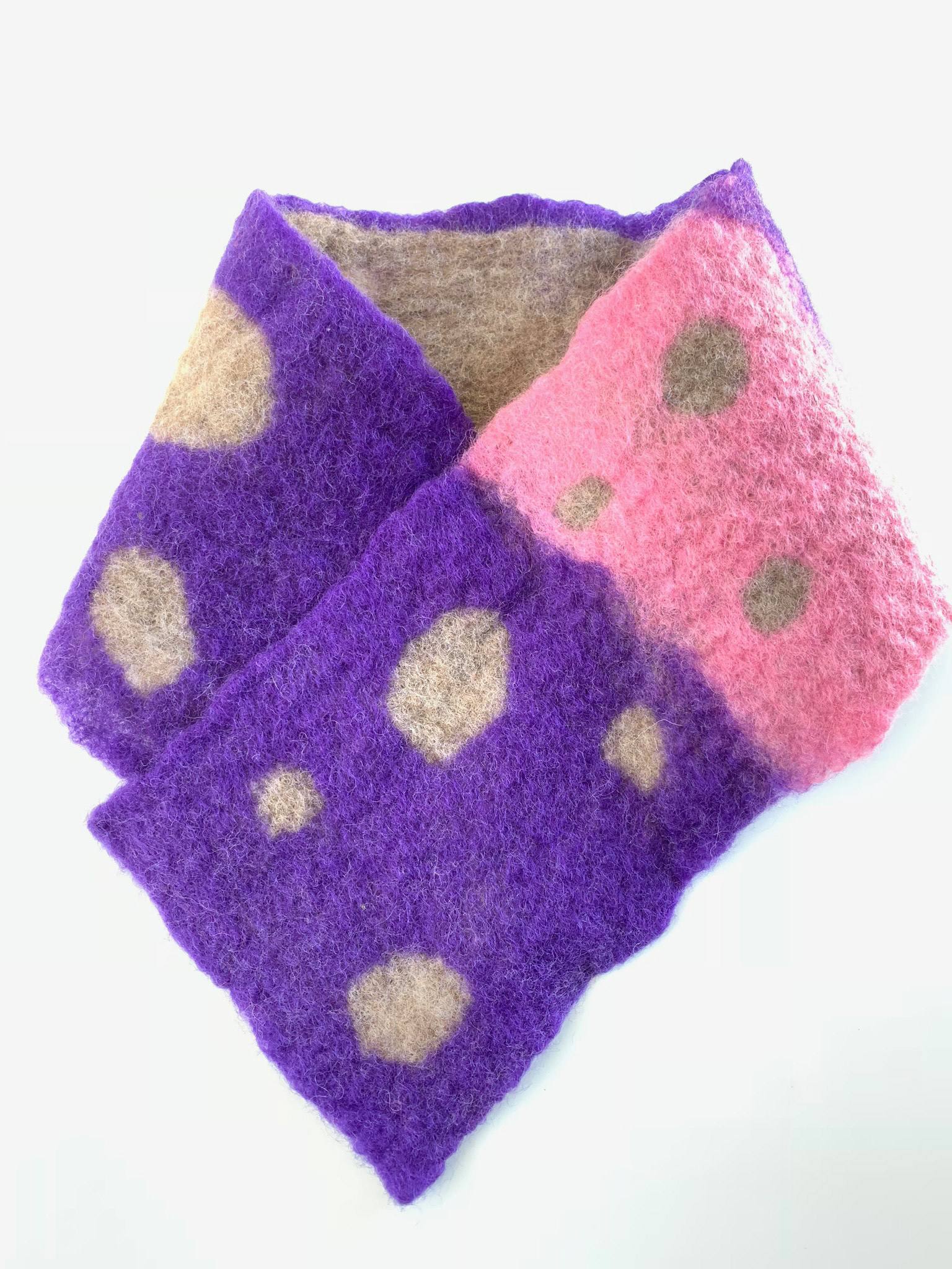 [berry] berryカラーとポップなドット柄のふわふわスカーフです ロムニー+コリデールウール100%