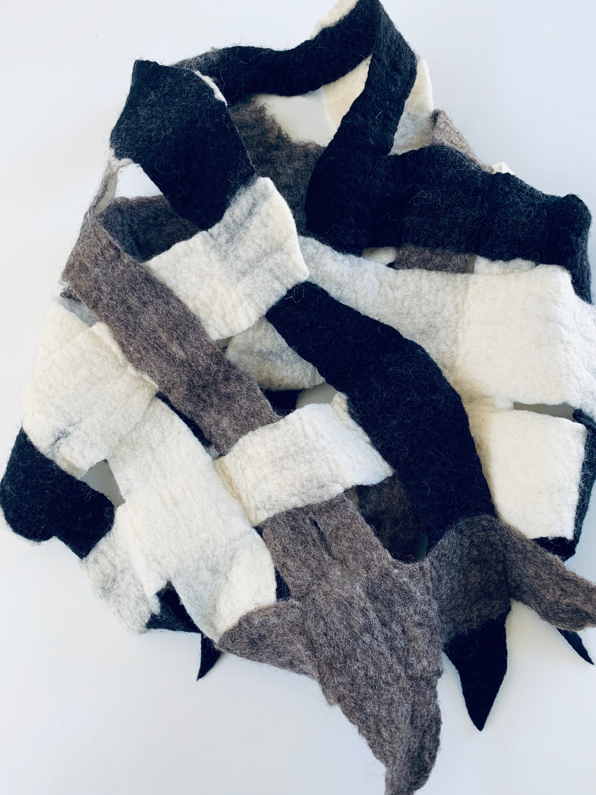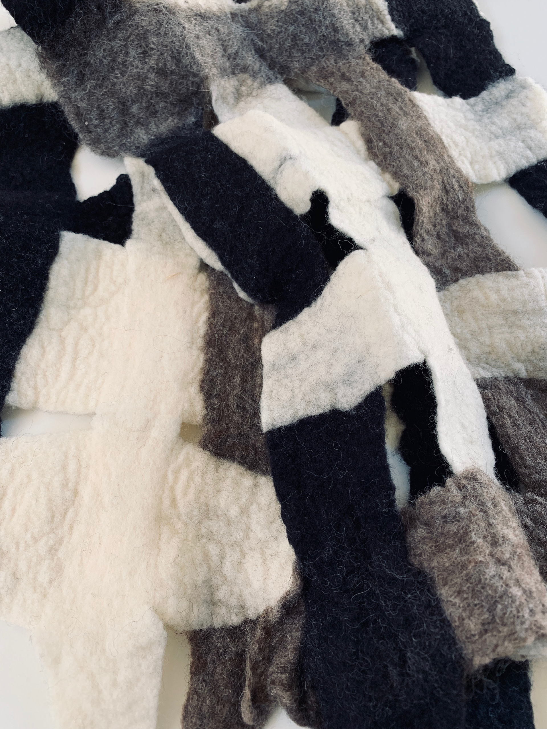 [3 color weave] 3種類の羊毛でフェルト編み込みにしてみました。 ナチュラルな色合わせのショールのような使い方ができるサイズです。 ロムニーウール100%