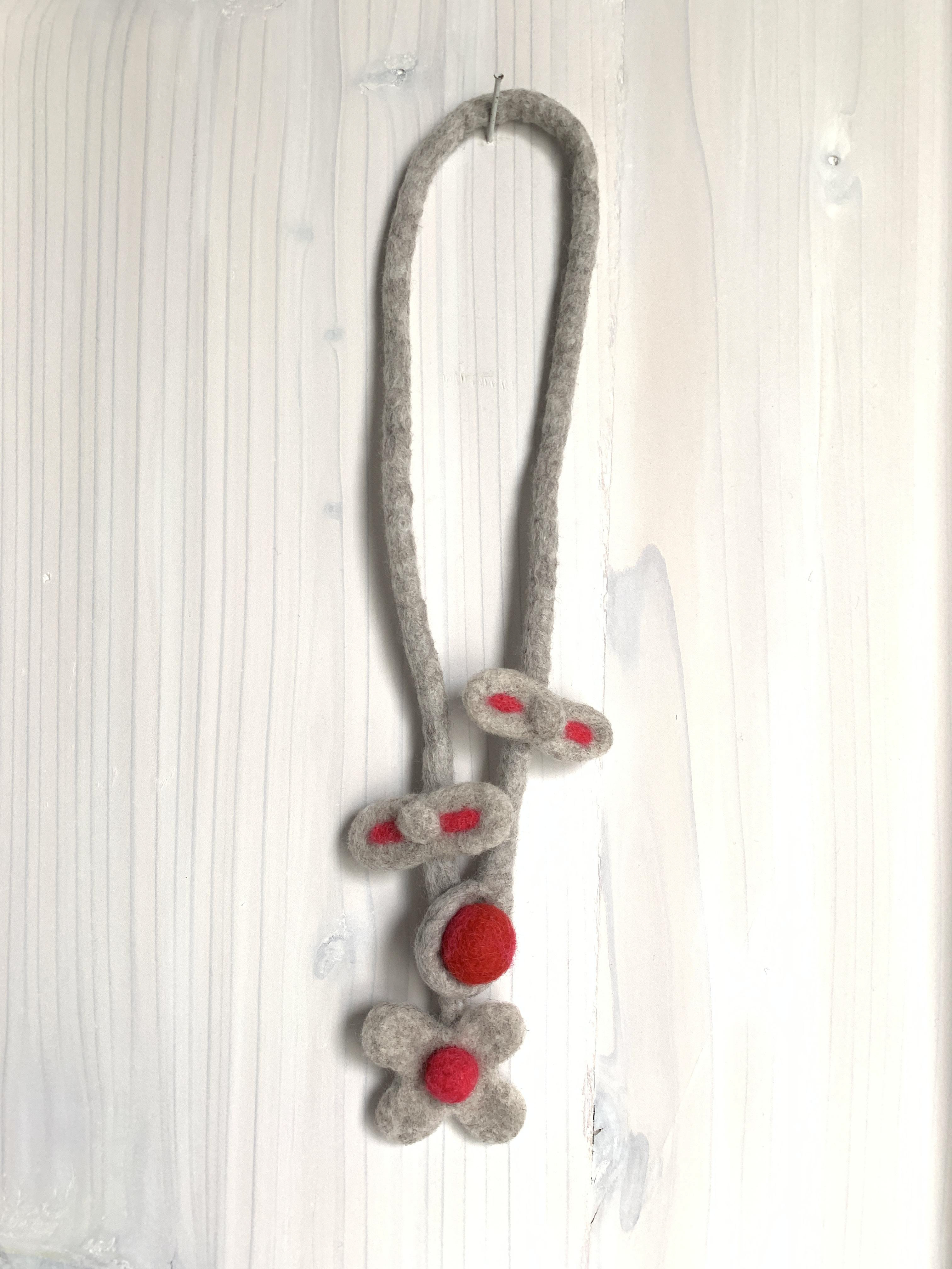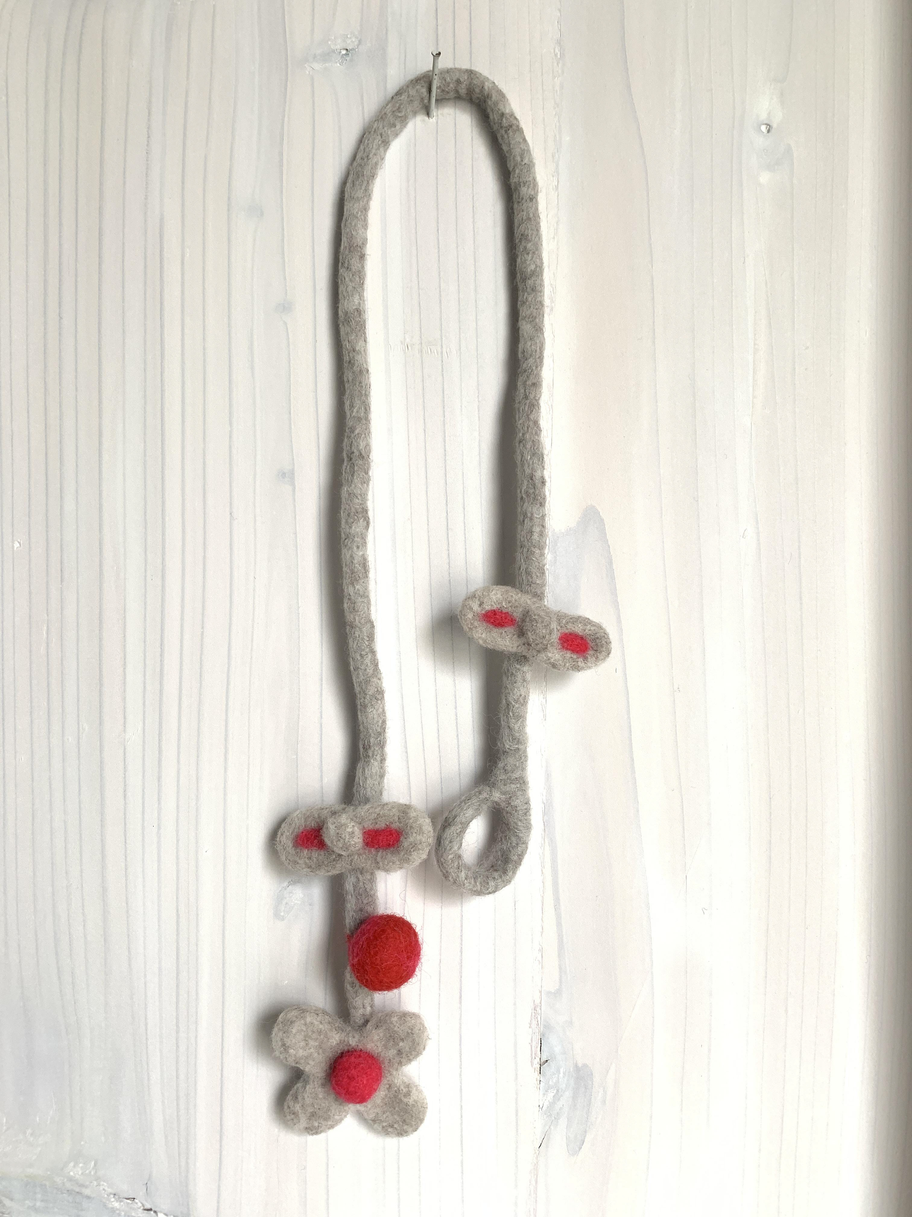 [Flower - ivory pink] 葉っぱの形がアクセントのニードルフェルト作ったネックレスです。 輪っかをボールに引っ掛けて止めます。 ロムニーウール100%