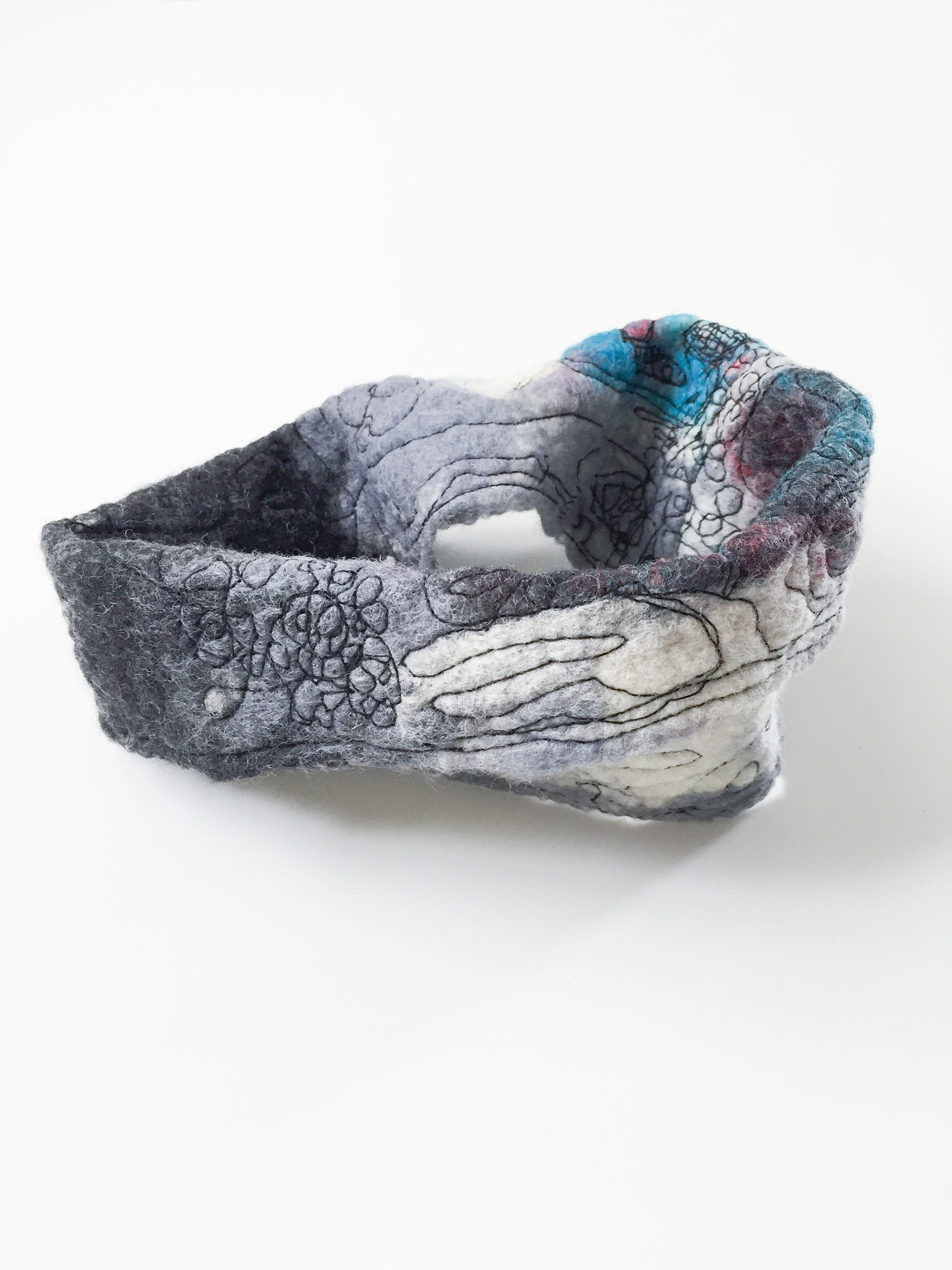 CYCLE COURSE [exploring course] サイクルコースシリーズから、「探検コース」のスヌードです。 はじめて通る道をぶらり散歩しながら探検コースを曲線ステッチで楽しくイメージしながら作ってみました。 メリノー+ロムニーウール 100% 綿糸(ブラック)